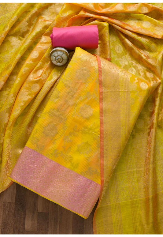 Banarasi Katan Silk Zari Work Unstitched Suit with Dupatta