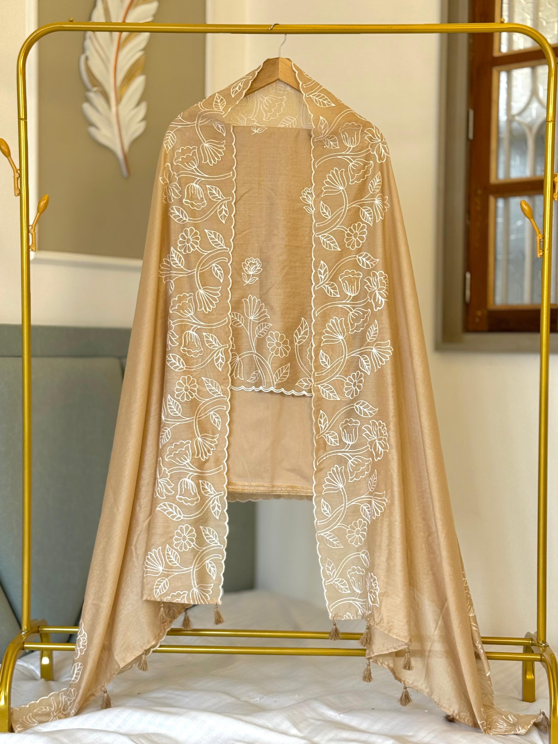 Banarasi Chanderi Silk Embroidery Work Unstitched Suit