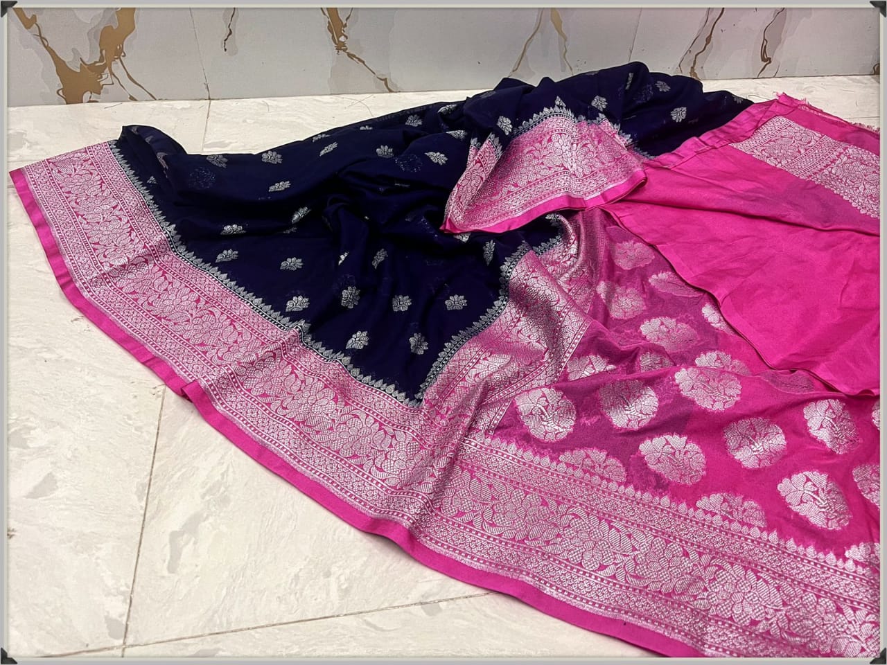 Banarasi Handloom Khaddi Semi Georgette Silk Saree With Blouse