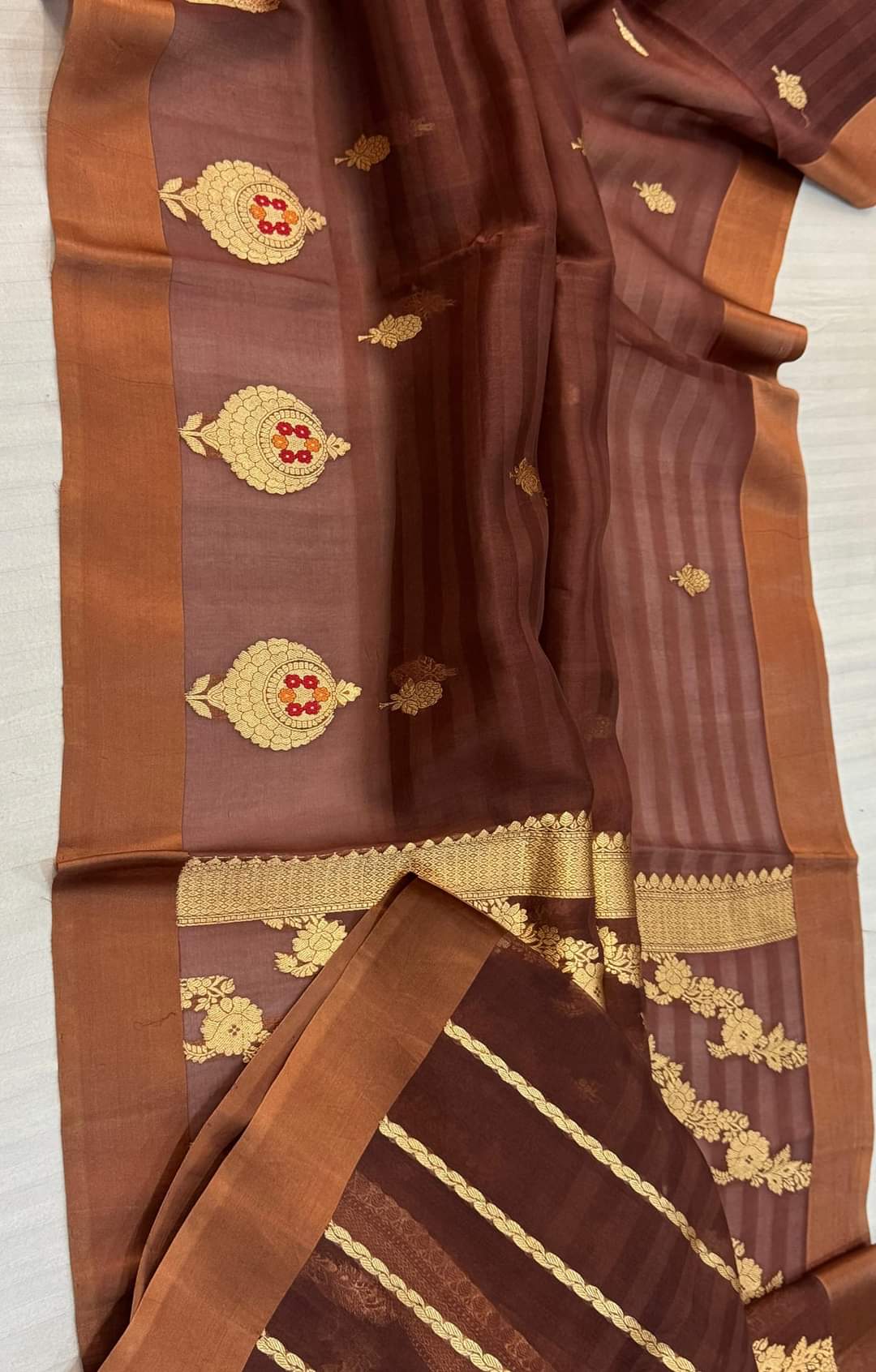 Banarasi Kora Organza Silk Saree with Alfi mina border.