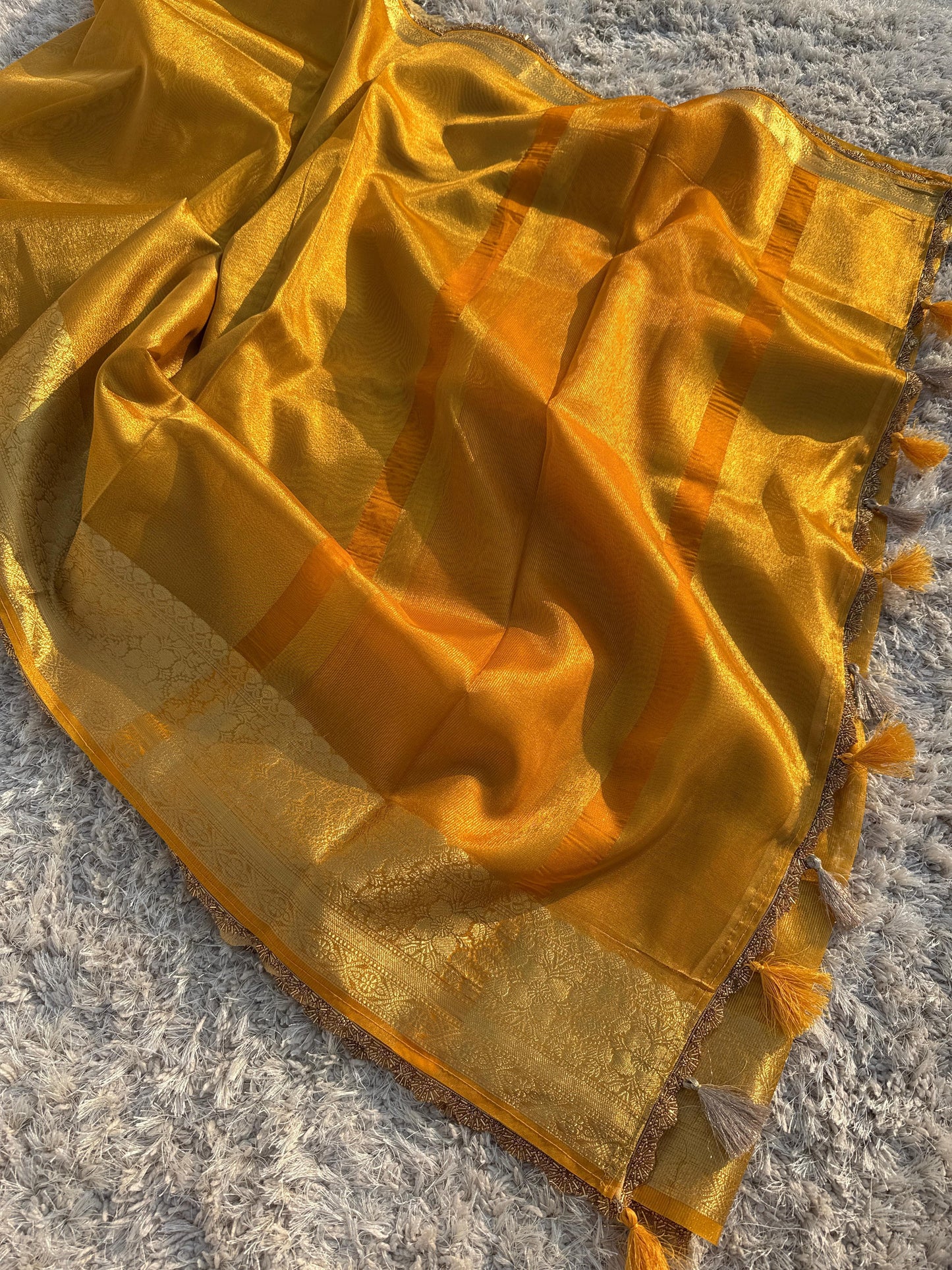 Banarasi Tissue Silk Saree with Heavy Lace Work.