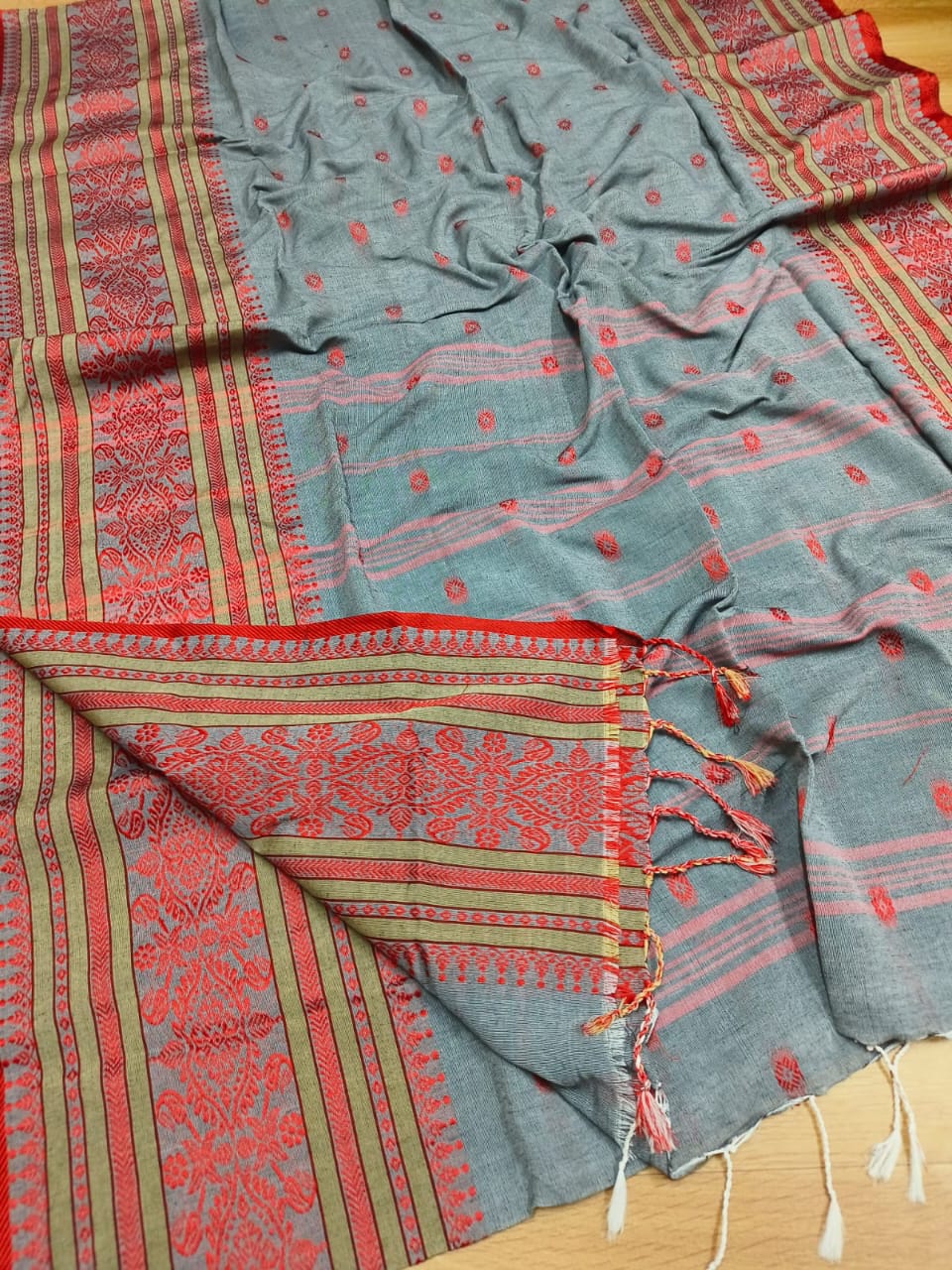 Discover the intricate weaving and rich heritage of Bengal with our Beautiful Handloom Cotton Sarees. Made with high-quality cotton, these sarees are lightweight, breathable, and durable. Experience the comfort and elegance of traditional Bengali fashion while supporting local artisans.