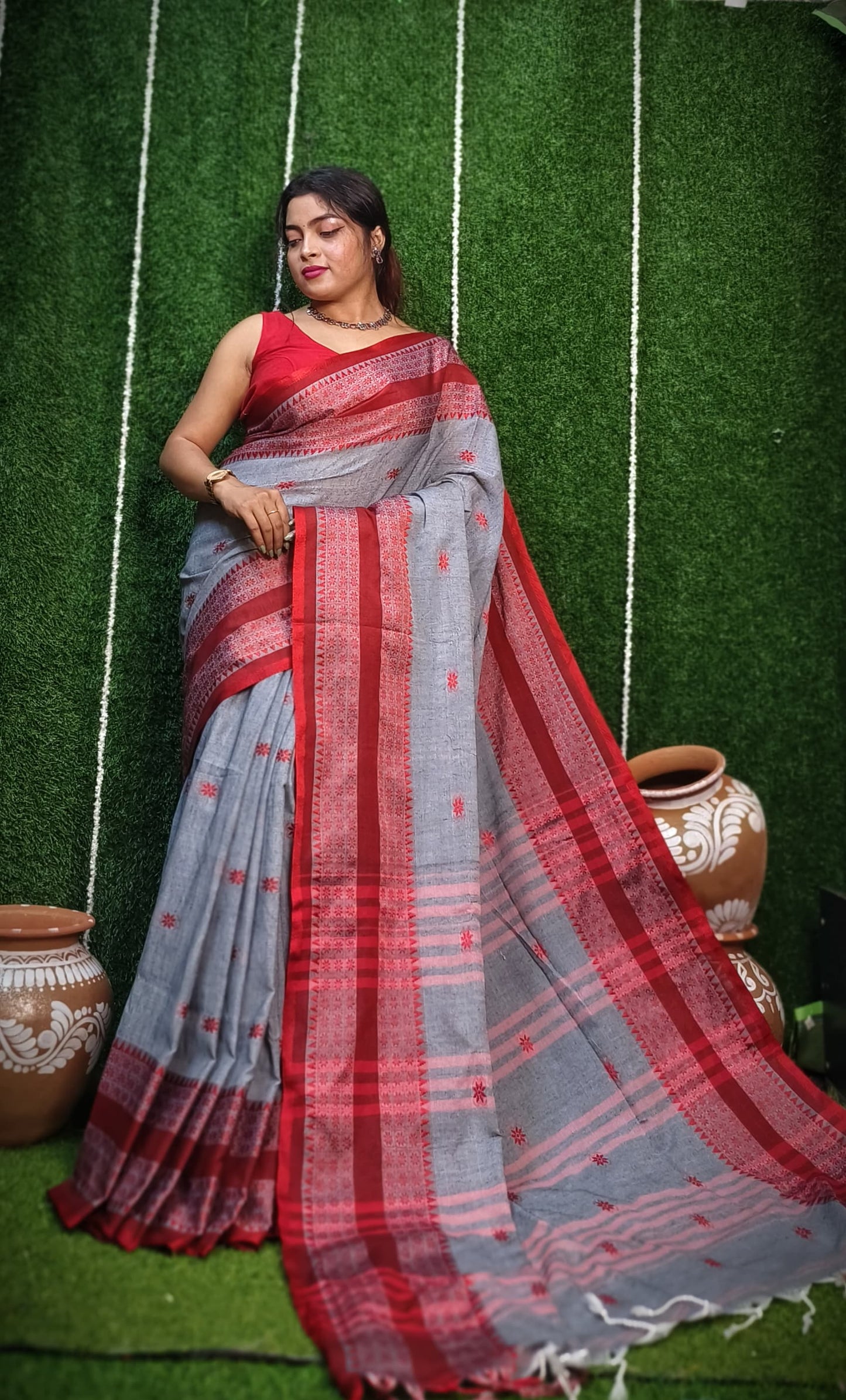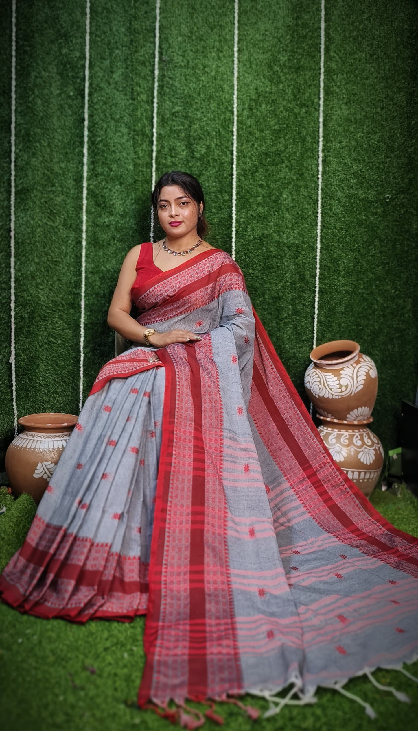 Discover the intricate weaving and rich heritage of Bengal with our Beautiful Handloom Cotton Sarees. Made with high-quality cotton, these sarees are lightweight, breathable, and durable. Experience the comfort and elegance of traditional Bengali fashion while supporting local artisans.