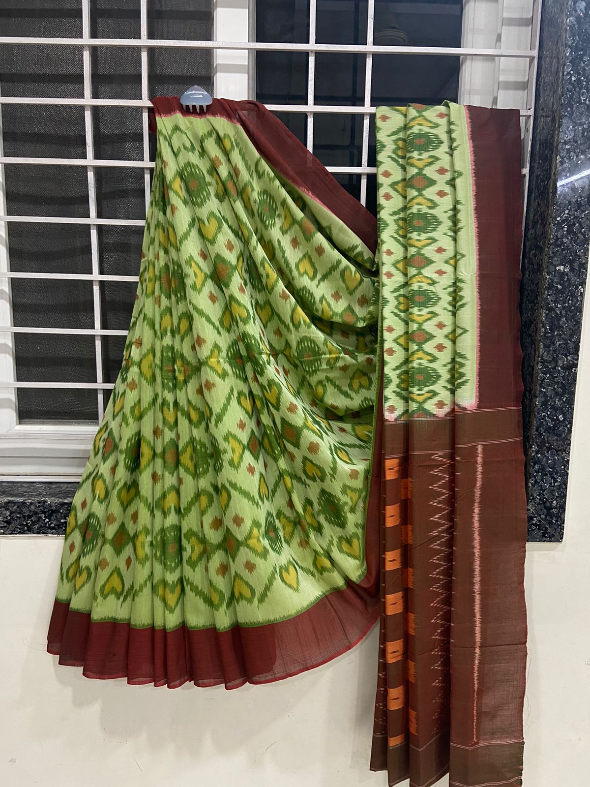 Expertly crafted with premium mercerised ikkat cotton, this designer saree boasts intricate patterns and vibrant colors. The included blouse adds versatility to this traditional yet modern ensemble. Elevate your wardrobe with this timeless and comfortable saree.