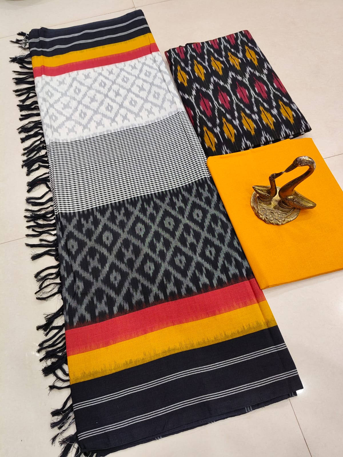 Beautiful Pure Cotton Double Ikkat Unstitched Suit.