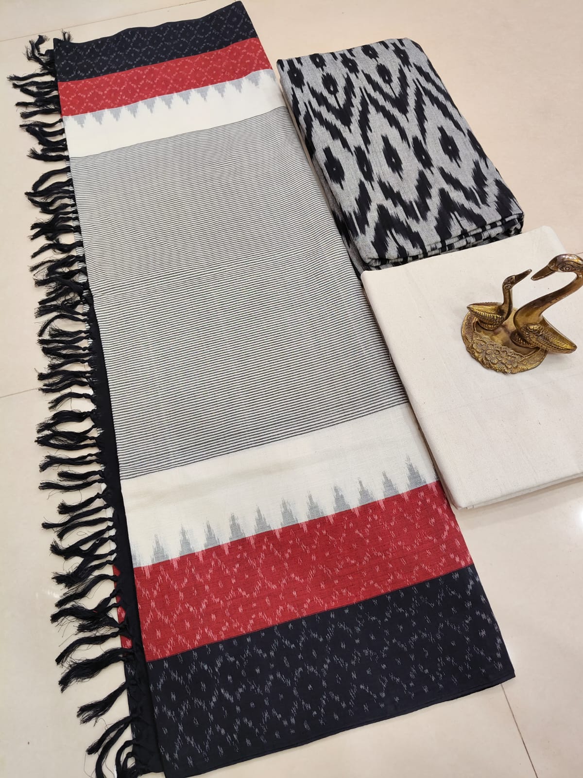 Beautiful Pure Cotton Double Ikkat Unstitched Suit.