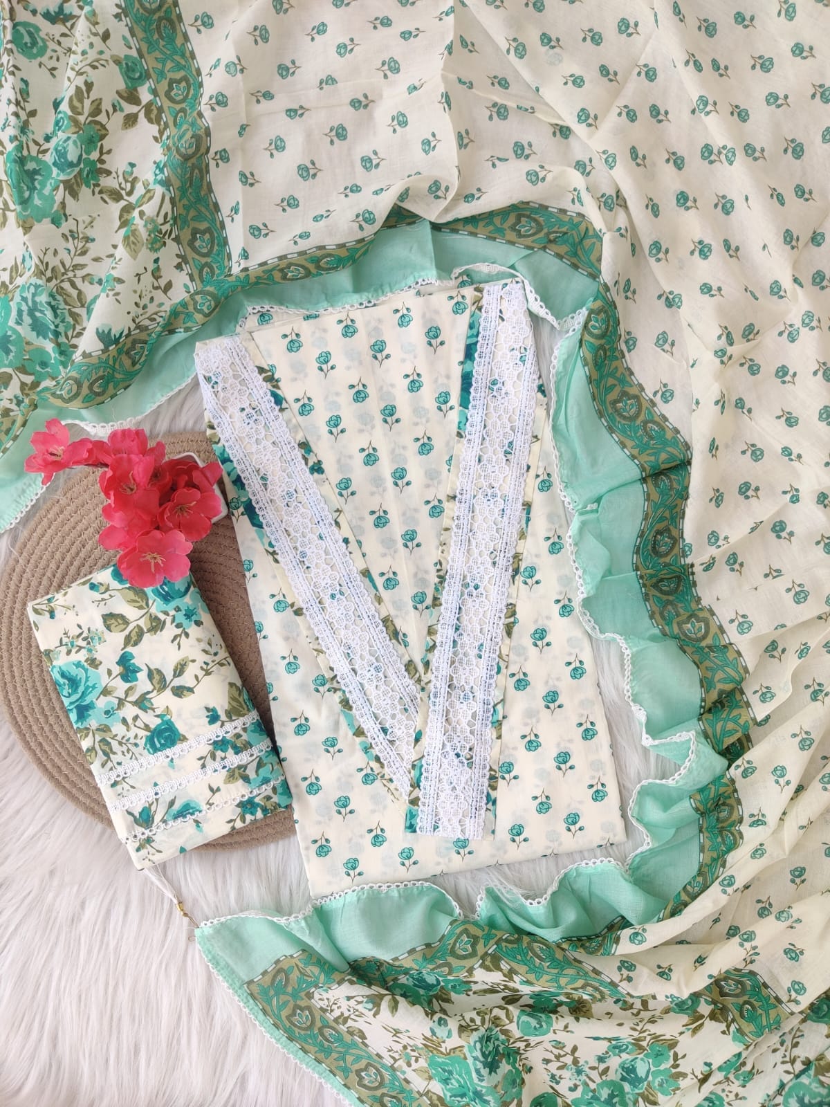 Beautiful Pure Cotton Hand Work Unstitched Suit