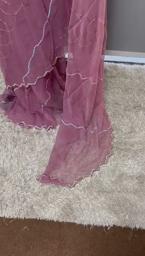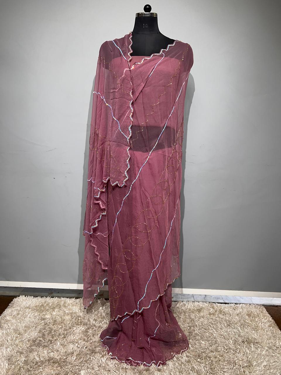 Beautiful Pure Diamond chiffon Hand Sikvans & kardana Work Full jaal Saree