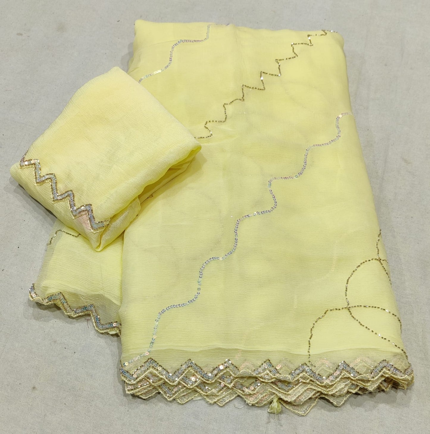 Beautiful Pure Diamond chiffon Hand Sikvans & kardana Work Full jaal Saree
