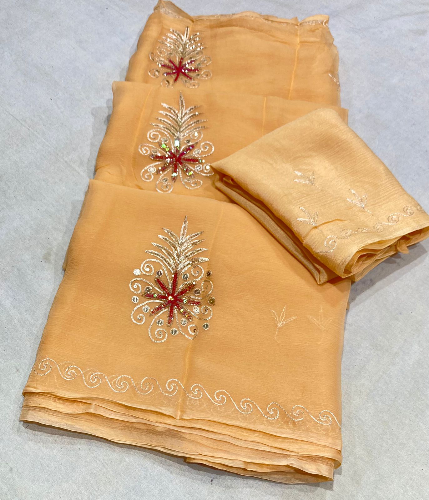 Beautiful Pure Diamond Chiffon Rajputi Hand Ksb Sikvans Work Saree
