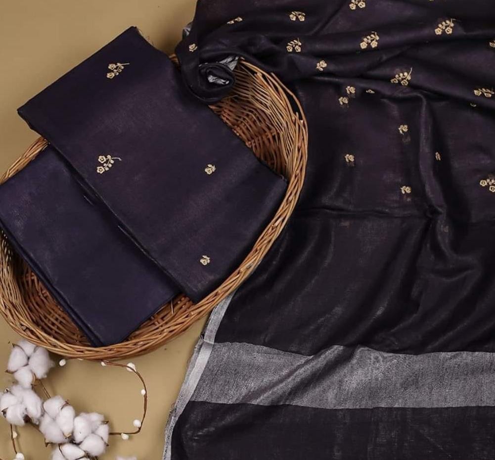 BHAGALPURI COTTON LINEN EMBROIDERY UNSTITCHED SUIT.