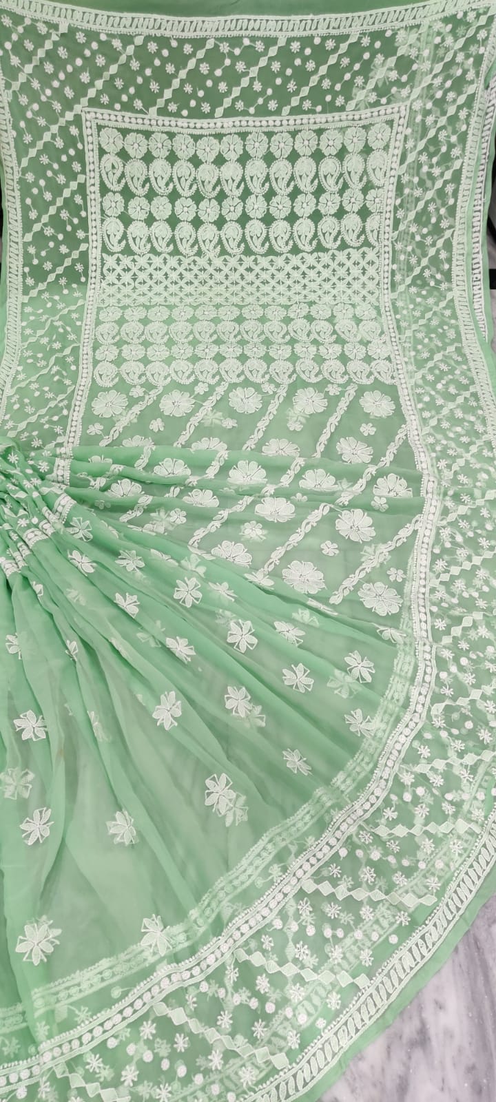 Chiffon Georgette All Over Chikankari Saree With Heavy Hand Work Embroidery WIth Blouse