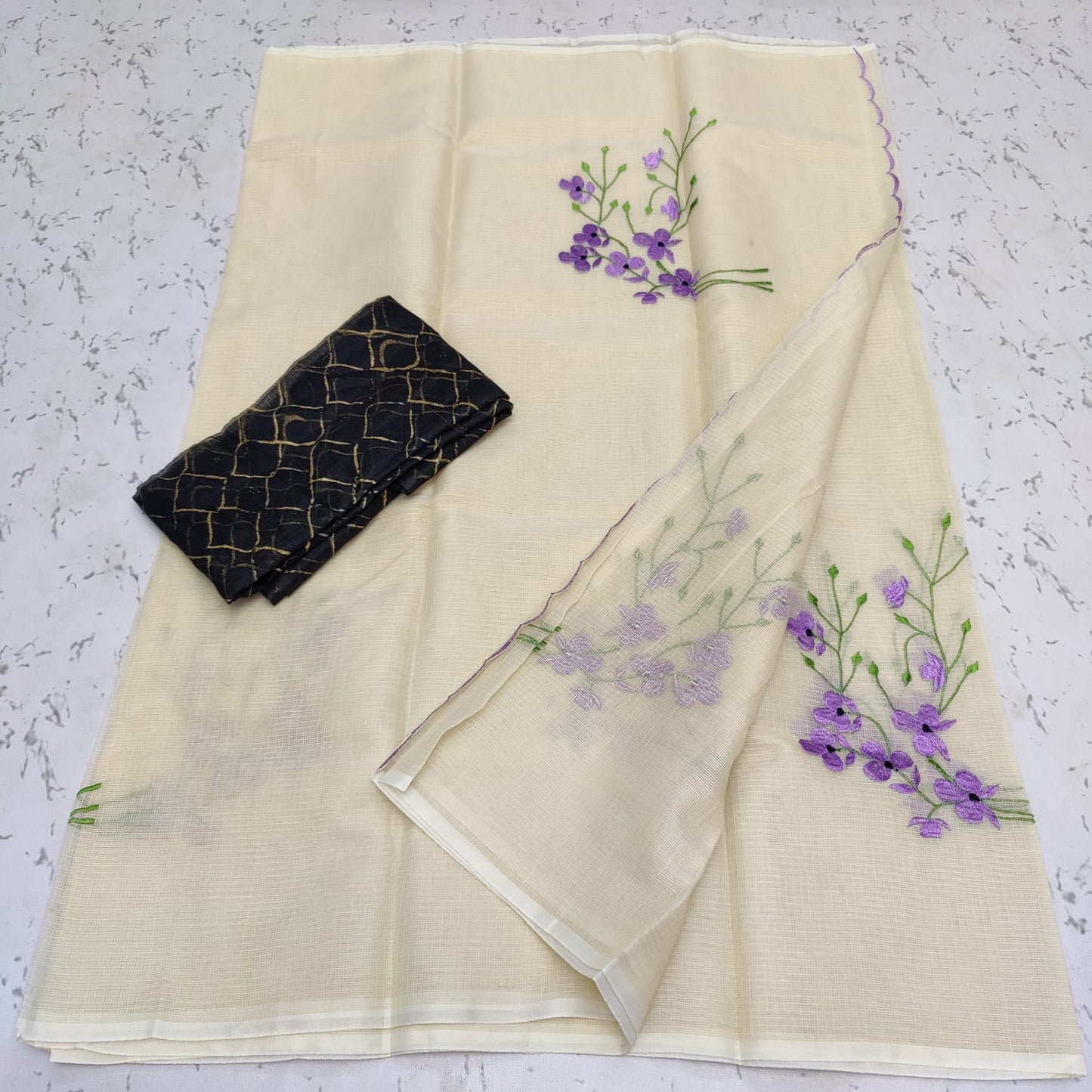 Cotton Kota Doriya Embroidery Saree With Blouse