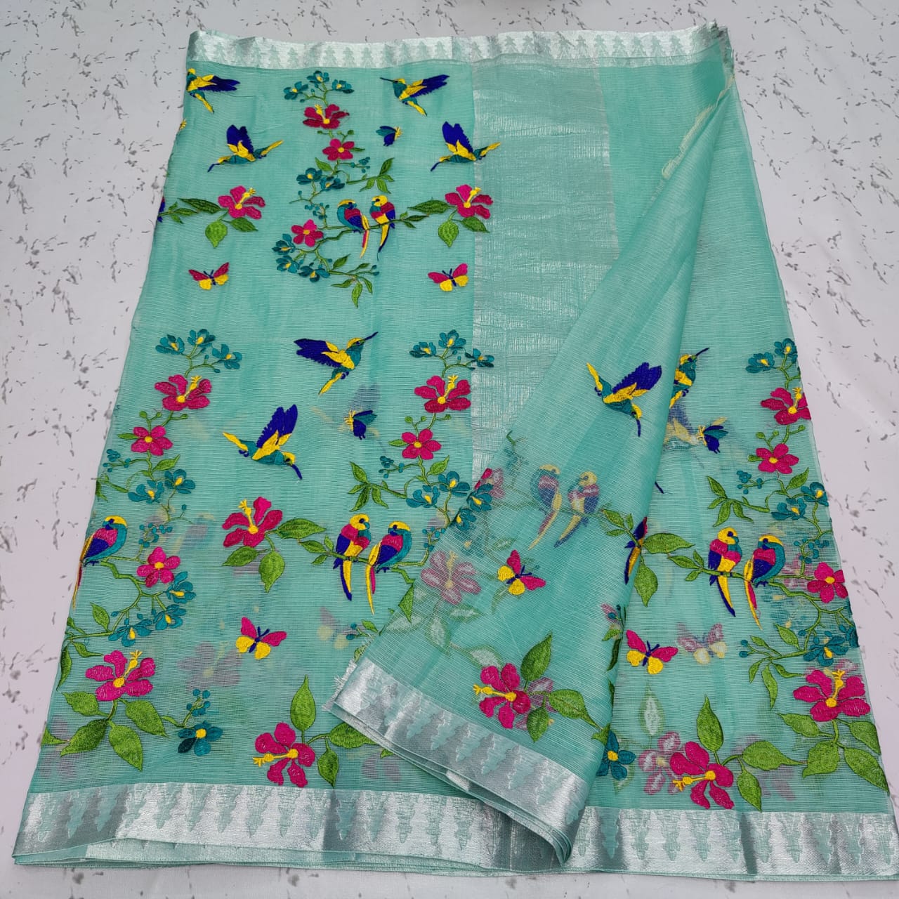 Cotton Kota Doriya Embroidery Saree With Blouse