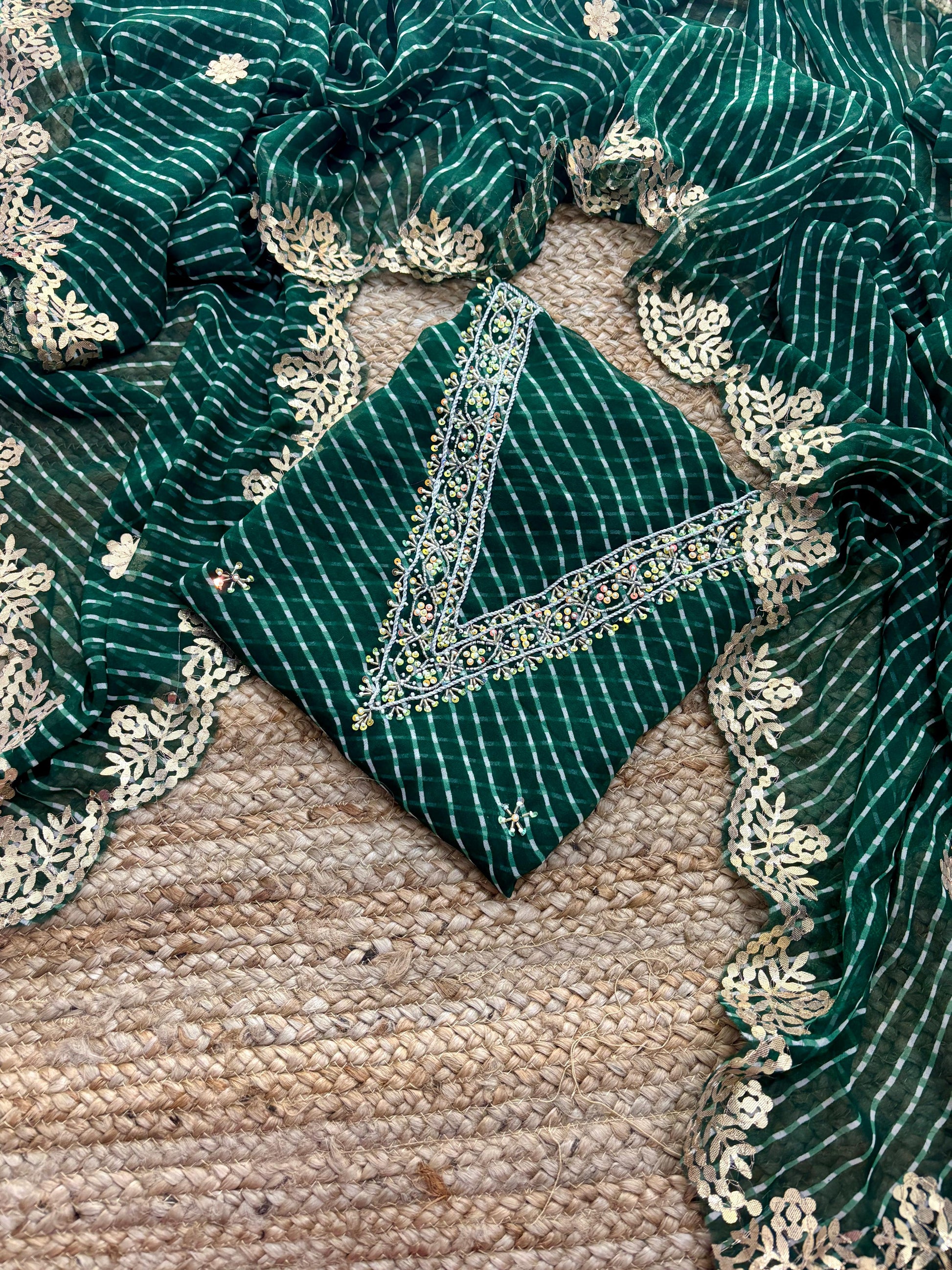Georgette Gota pati Hand Work Unstitched Suit With Dupata.