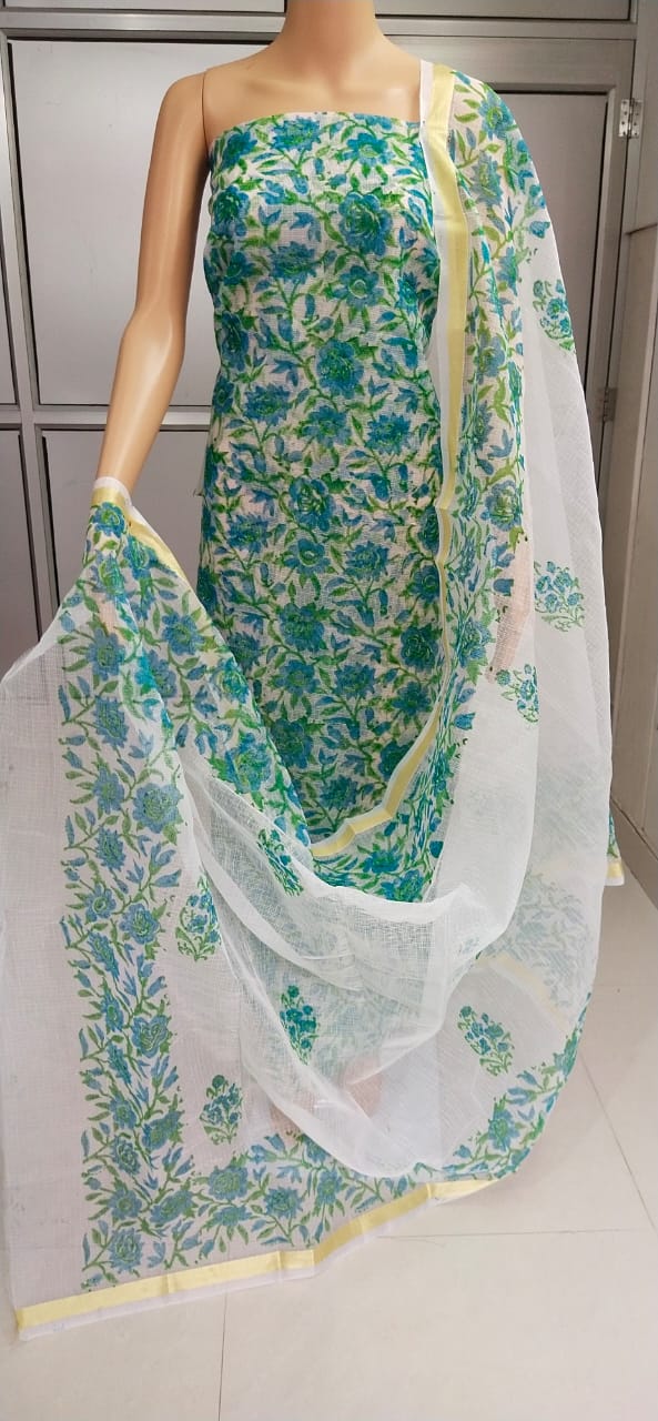 Green Kota Doriya unstitched suits With Kota Doriya Dupatta (Without Bottom )