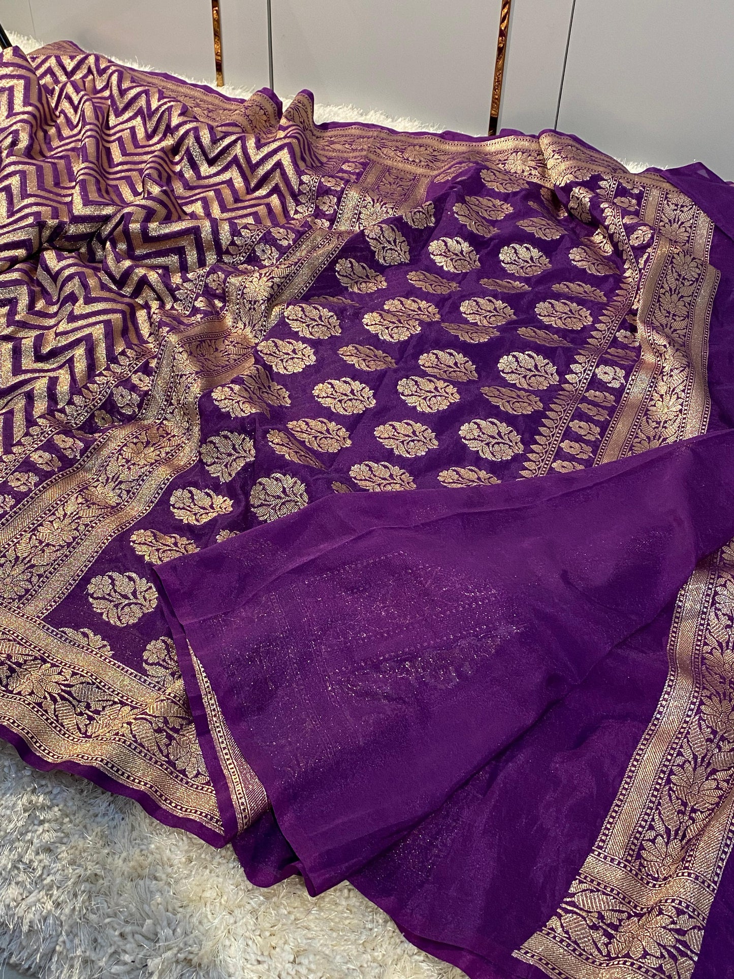 Handloom Banarasi Khaddi Katan Georgette Silk Saree.