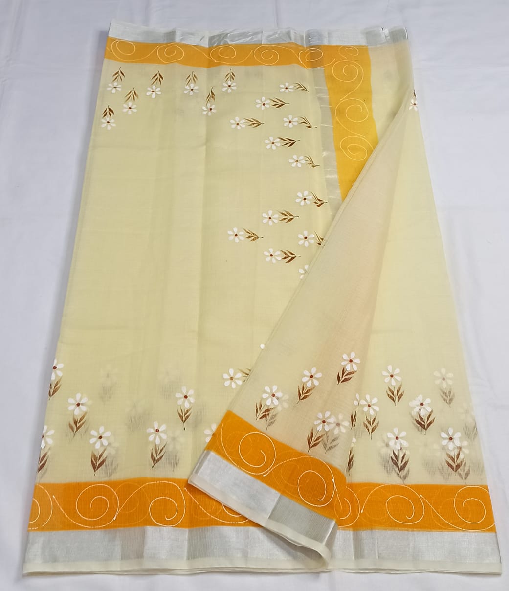 Pure Kota Doriya Hand Painting Saree With Blouse