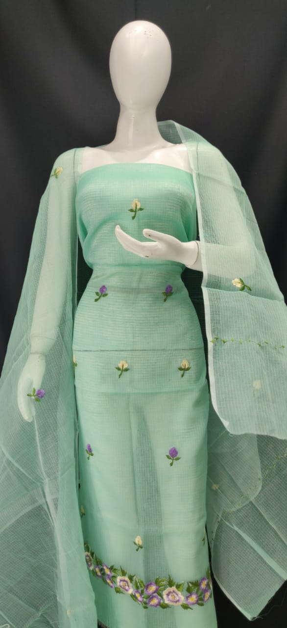 Kota Doriya Embroidery Boota Work Unstitched Suits With Kota Embroidery Work Dupatta