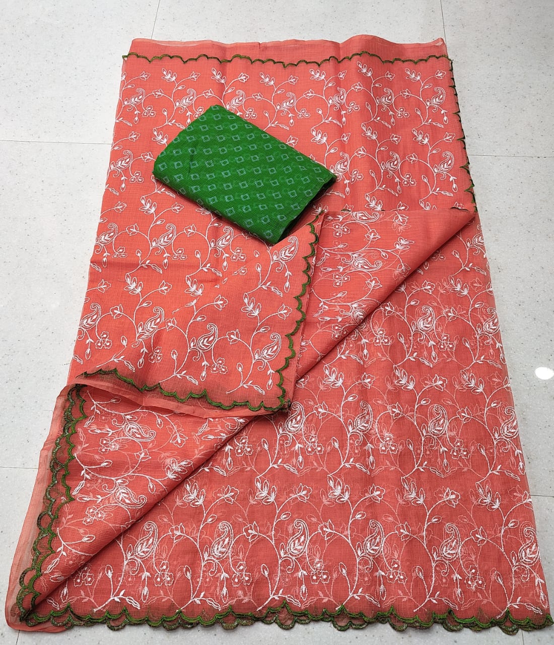 Kota Doriya Soft Cotton Chickenkari Embroidery Work Saree With Blouse