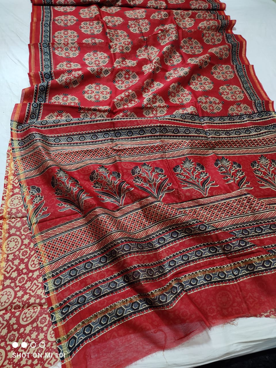 PURE CHANDERI SILK SAREE WITH AZRAK & PATOLA PRINT WITH BLOUSE