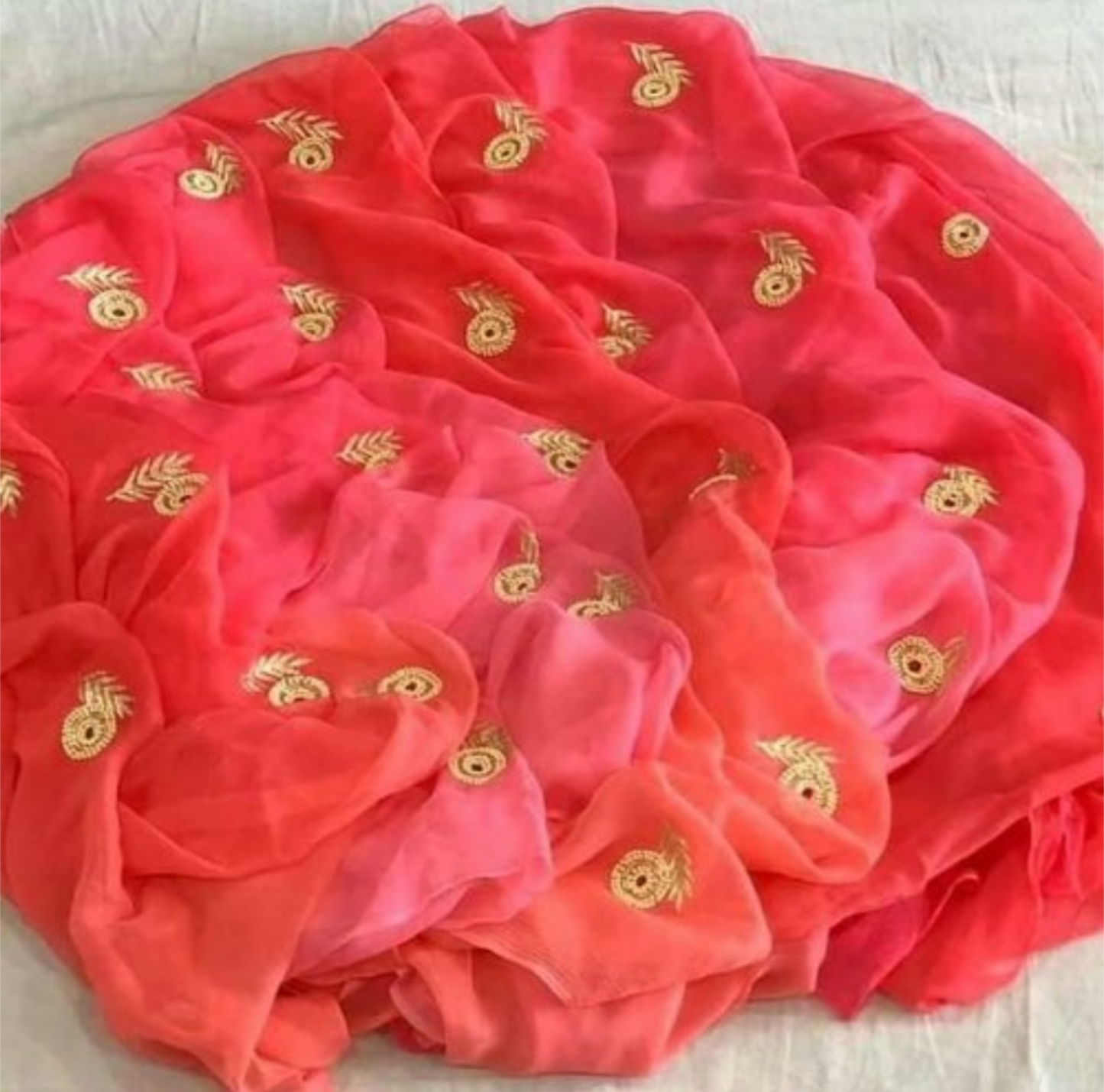 This handcrafted saree is made from the finest jaipuri chiffon, known for its delicate and luxurious texture. With intricate hand work detailing, this saree is perfect for any formal occasion, showcasing your sophisticated style. Elevate your wardrobe with this pure chiffon saree.