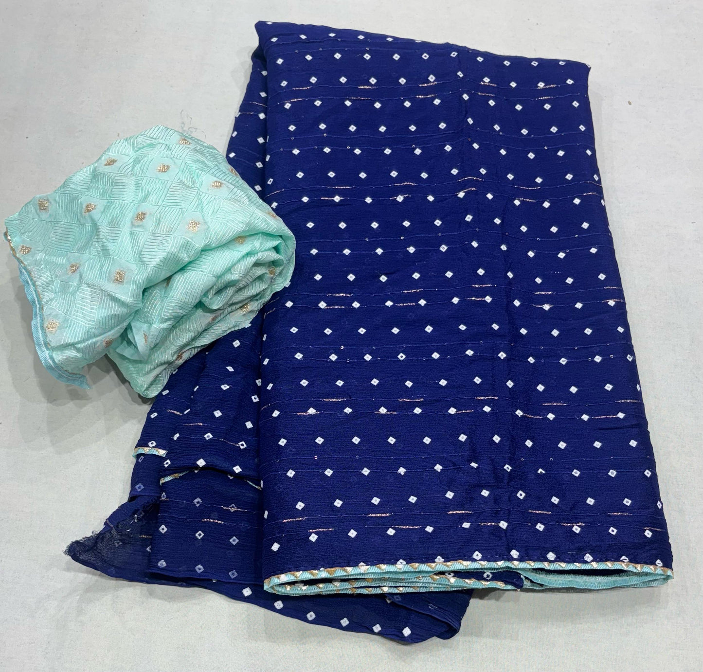 Pure Chinon Shikvesh Taching Bandhej Printed Saree Blouse.