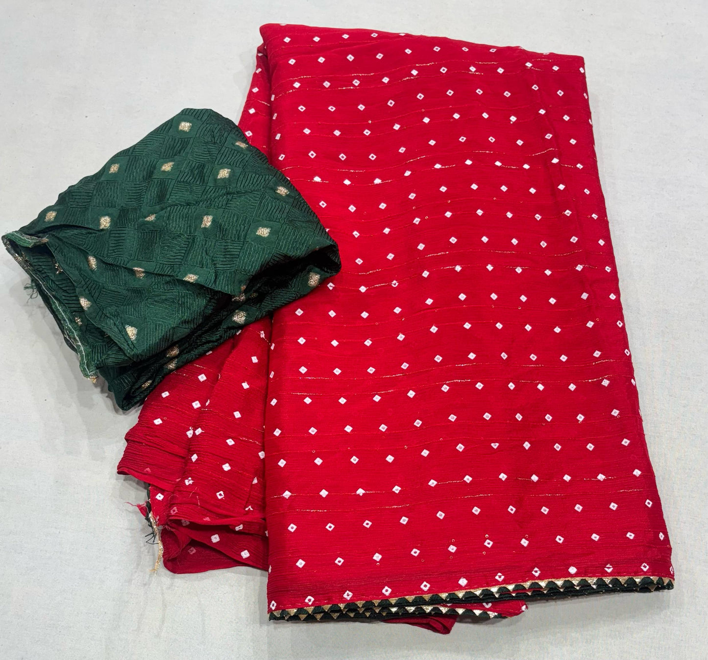 Pure Chinon Shikvesh Taching Bandhej Printed Saree Blouse.