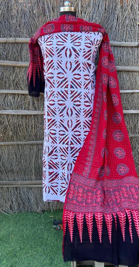 Pure Cotton Azrak Hand Work Unstitched Suits With Azrak Dupatta( Without Bottom)