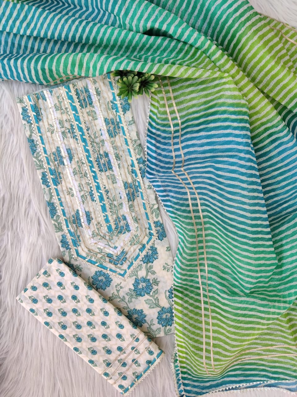 Pure Cotton Gota Patti Work Unstitched Suit With Kota Doria Dupatta
