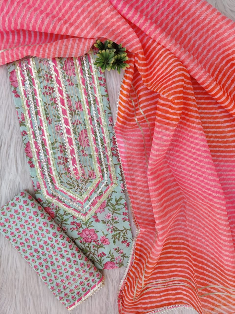 Pure Cotton Gota Patti Work Unstitched Suit With Kota Doria Dupatta