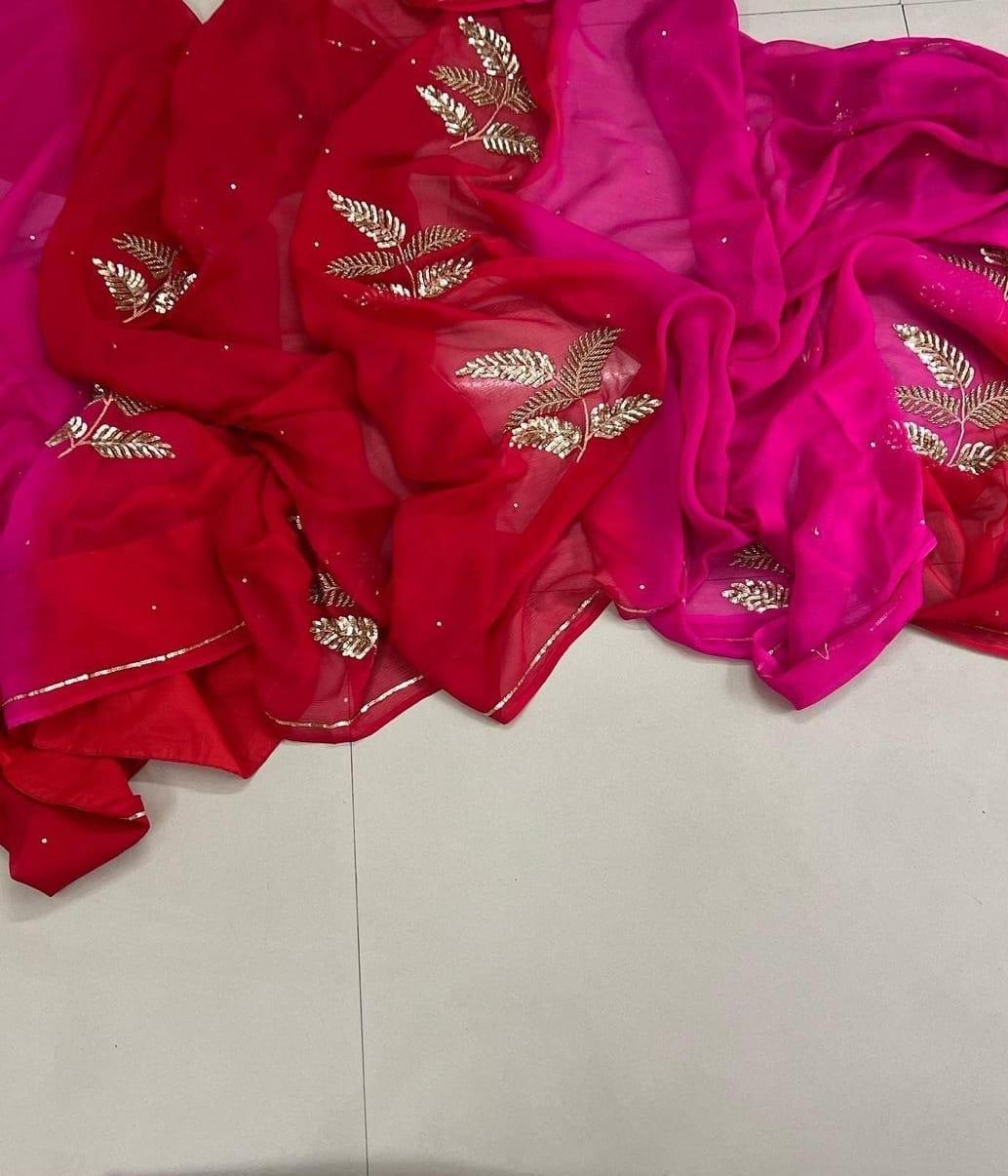 Pure Diamond Chiffon Beautiful Hand Work Saree