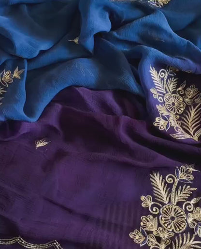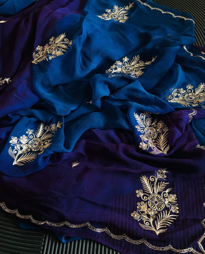 Pure Diamond Chiffon Beautiful Hand Work Saree