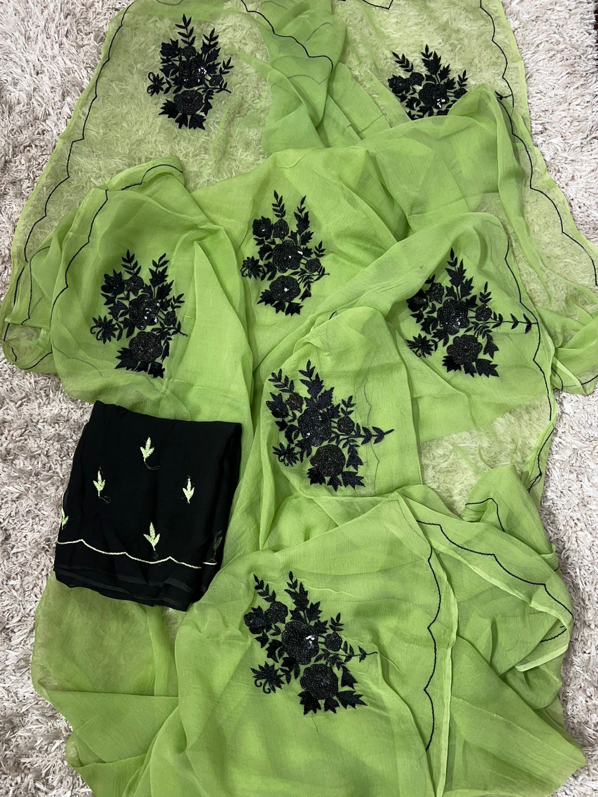 Pure Diamond Chiffon Beautiful Hand Work Saree