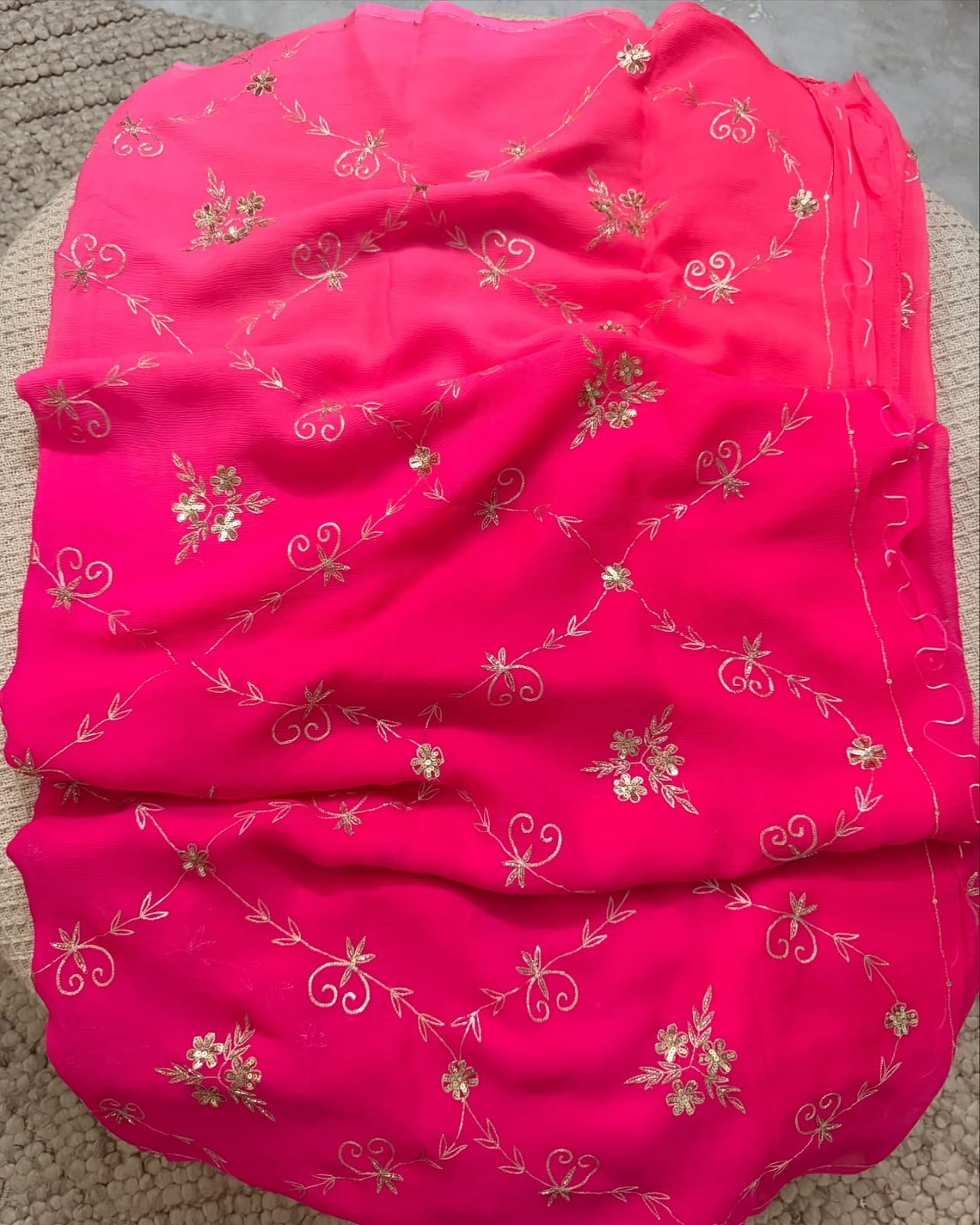Pure Diamond Chiffon Beautiful Hand Work Saree