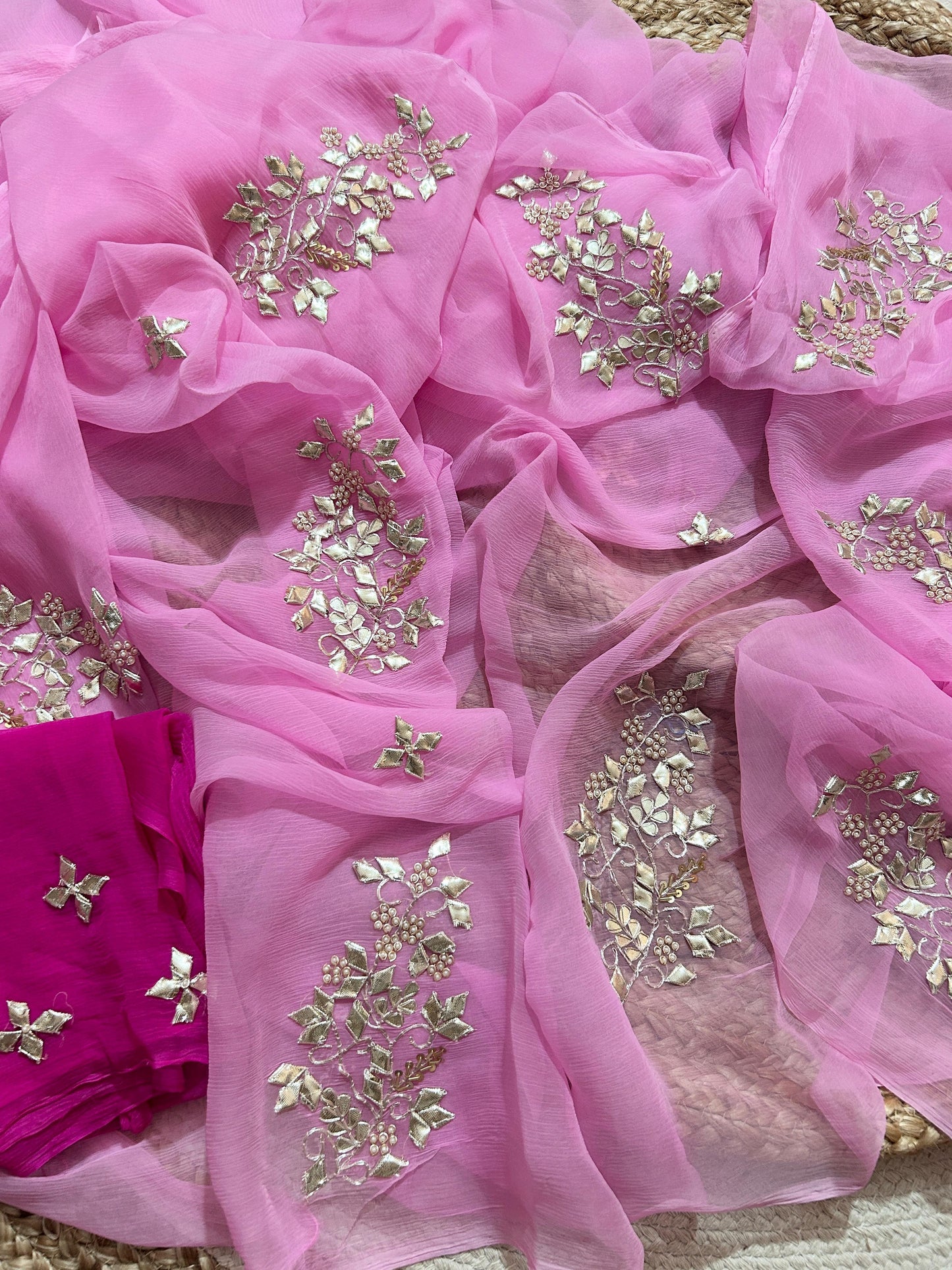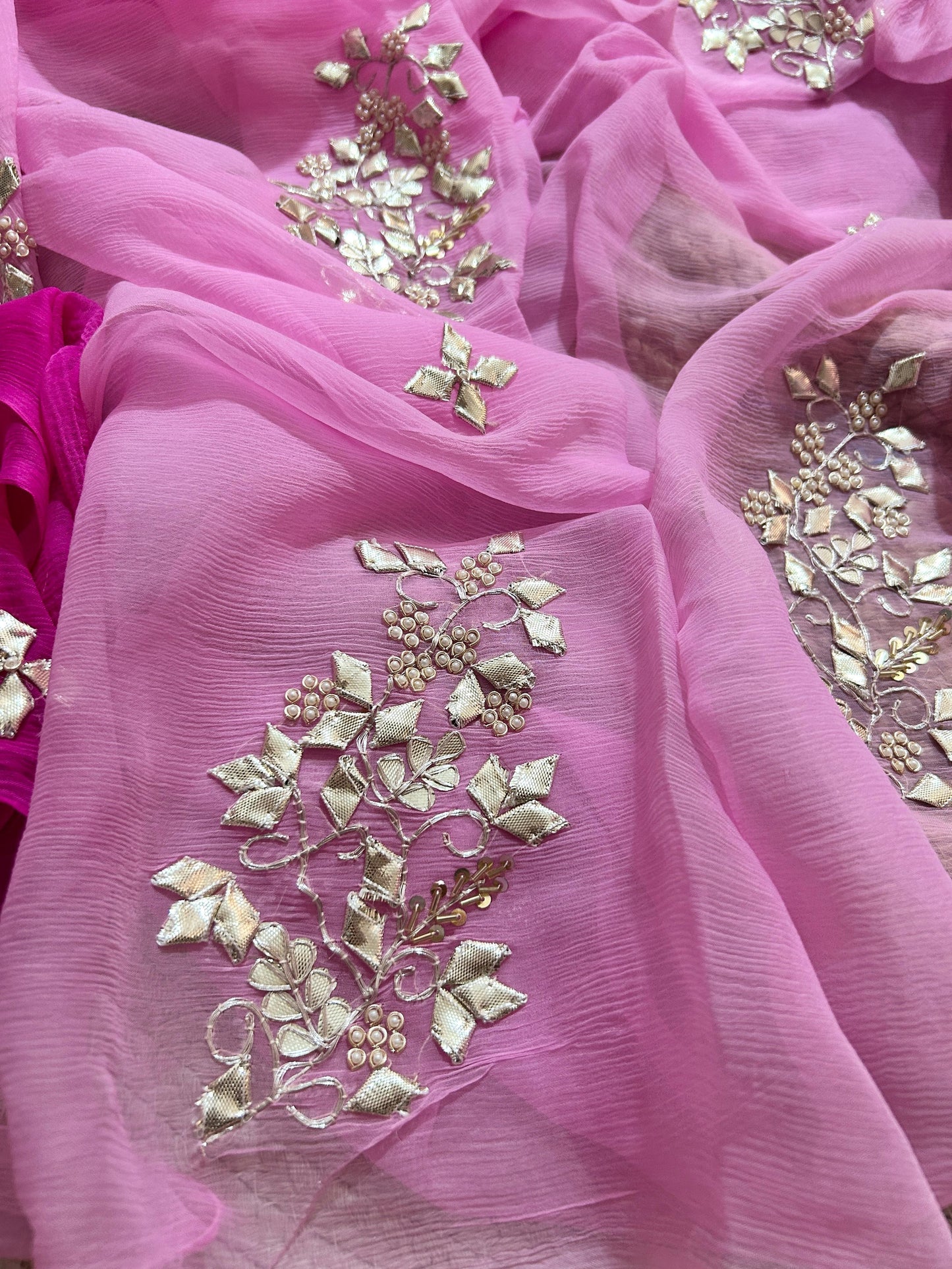 Pure Diamond Chiffon Gota Work Saree With Blouse