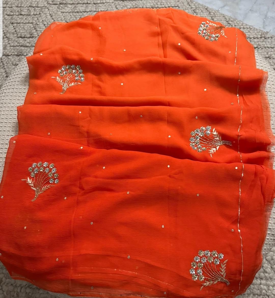 Pure Diamond Chiffon Beautiful Hand Work Saree