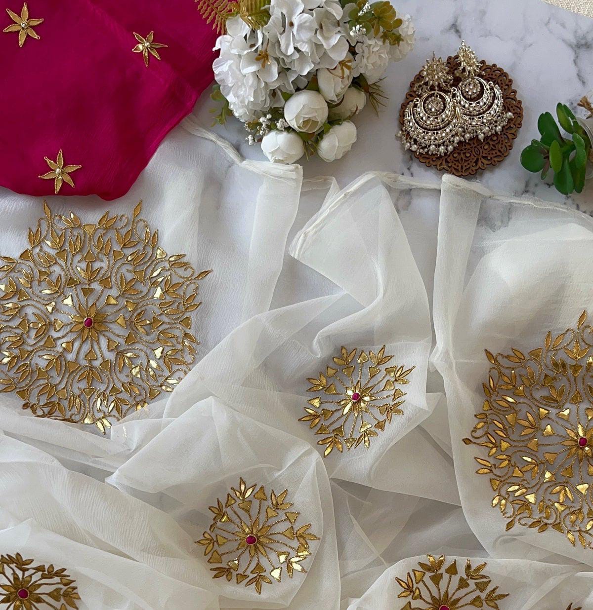 Pure Diamond Chiffon Gota Work Saree With Blouse.