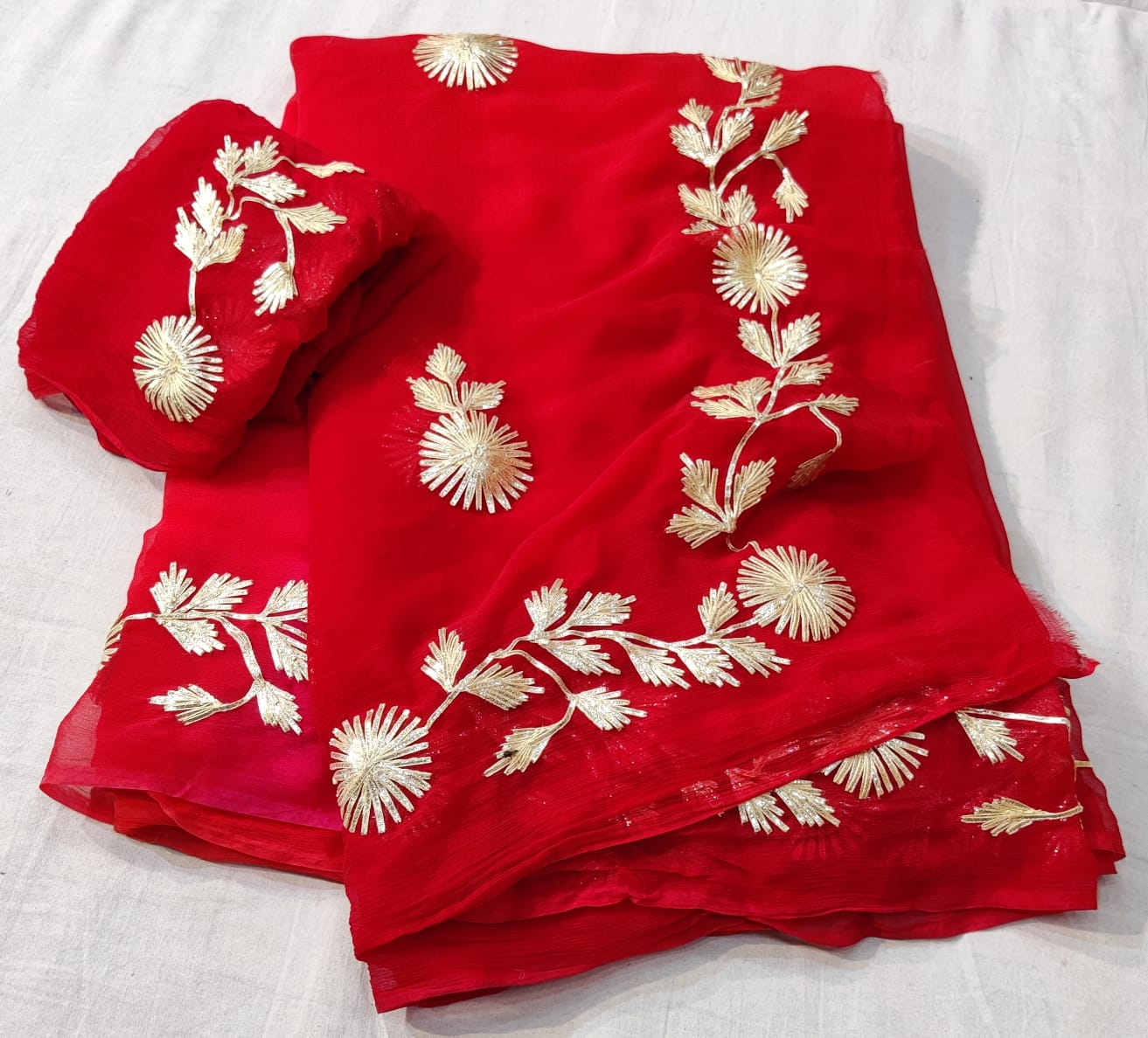Pure Diamond Chiffon Gota Work Saree With Running Work Blouse