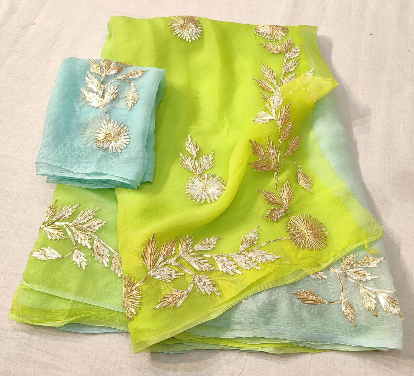 Pure Diamond Chiffon Gota Work Saree With Running Work Blouse