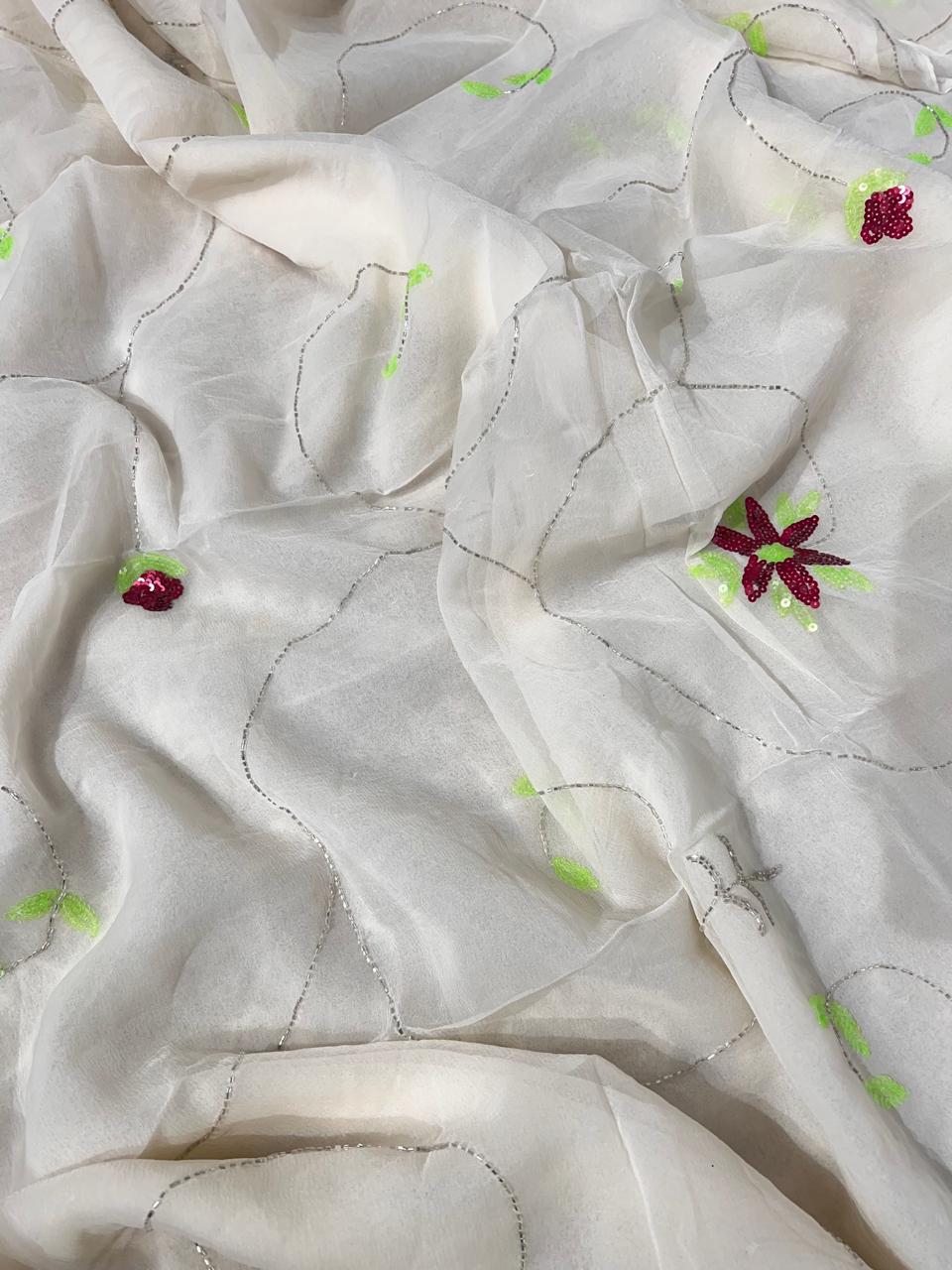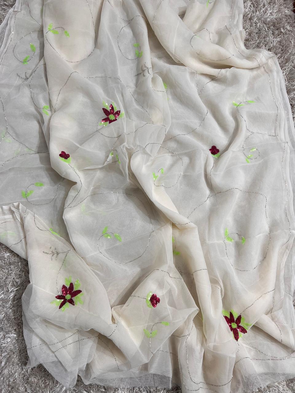 Pure Diamond Chiffon Handwork Saree