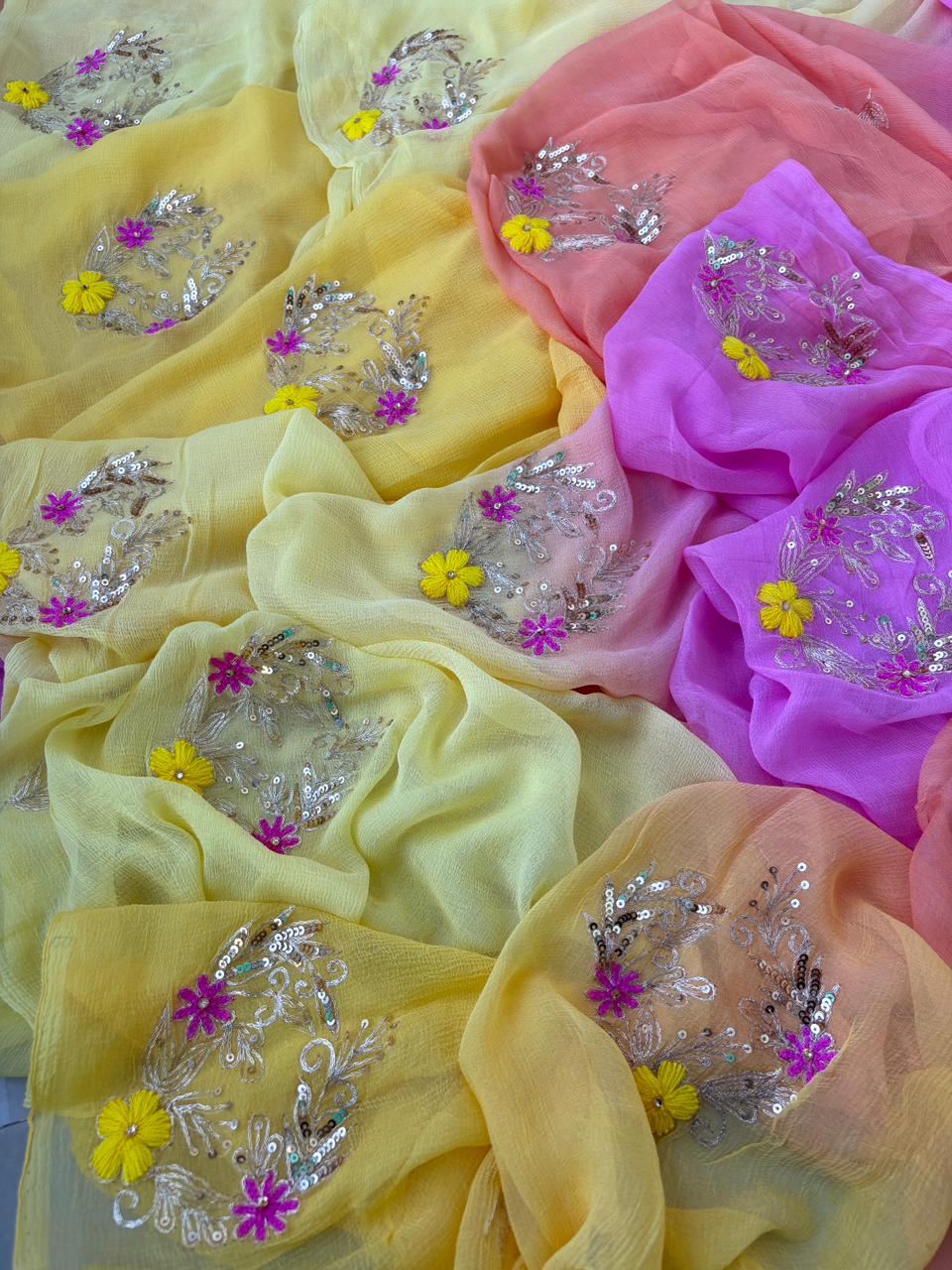 Pure Diamond Chiffon Ksb Work Butta Saree With Blouse.