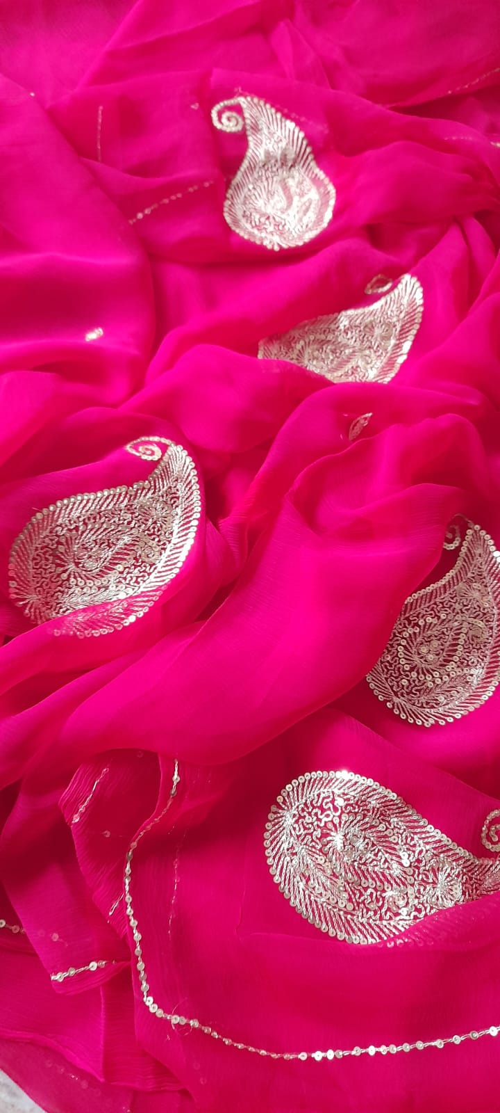 Pure Dimond Chiffon Hand mofits Saree With Blouse (13 Buti )
