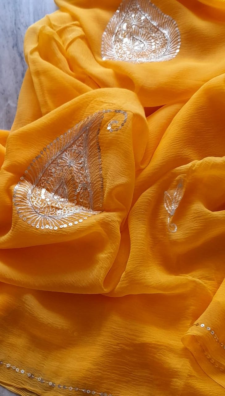 Pure Dimond Chiffon Hand mofits Saree With Blouse (13 Buti )