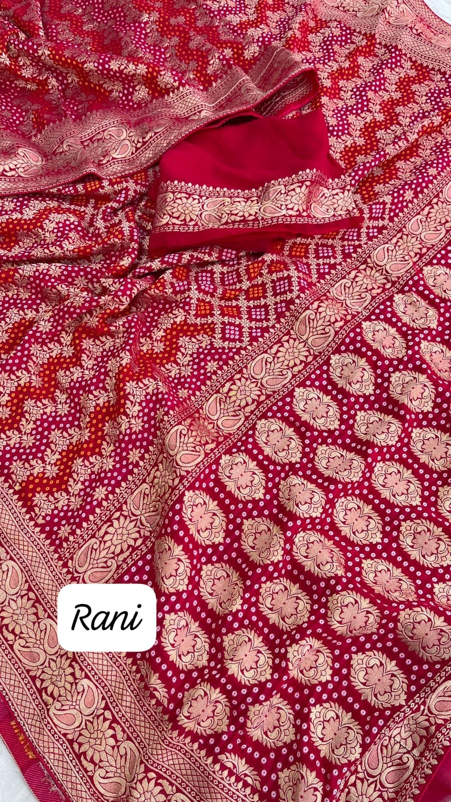 Pure Handloom Khaddi Georgette Bandhej Saree