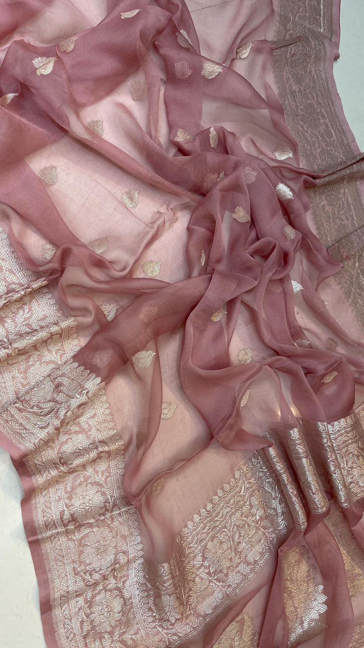 Pure Handloom Khaddi Chiffon Georgette Saree With Silver Zari Weaving Blouse ( length- 6.3 meter )