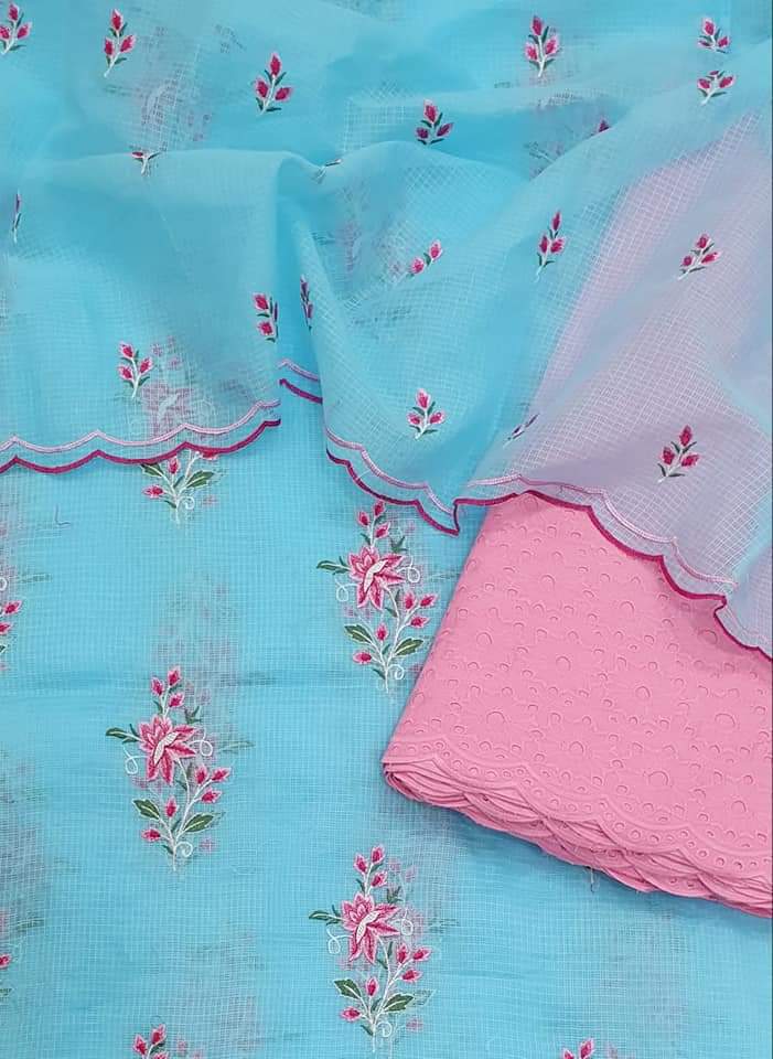 Pure Kota- doria Unstitched suit with Chikankari Bottom