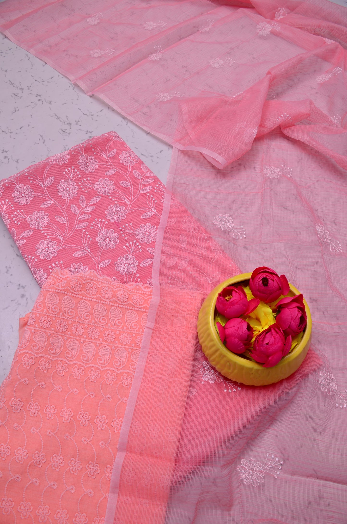Pure Kota- doria Unstitched suit with Chikankari Bottom