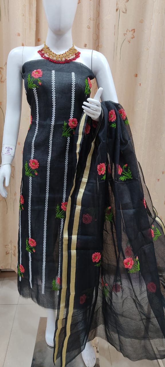 Pure Kota- doria Unstitched suit with Chikankari Bottom