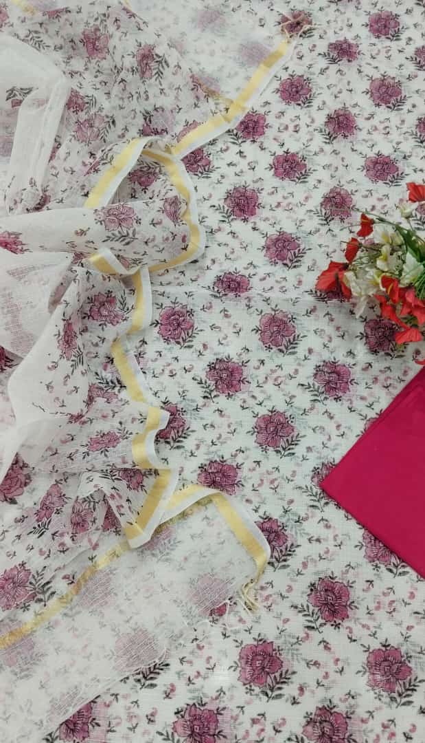 Pure Kota doriya Hand Block Printed UNSTITCHED SUIT.